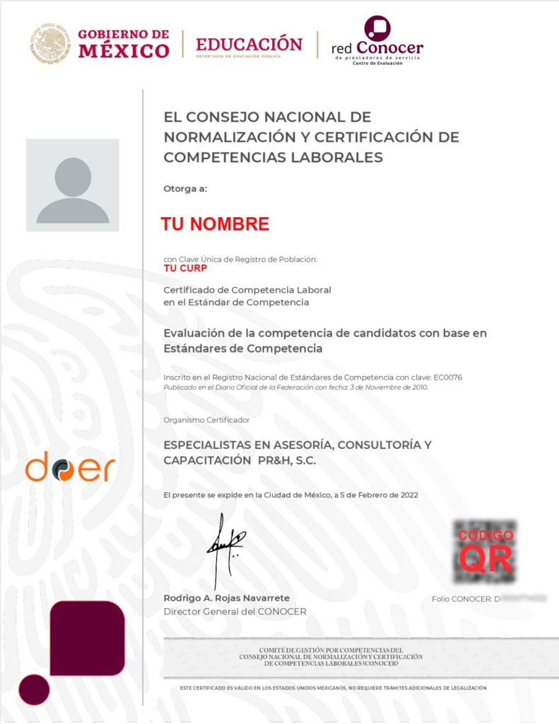 Somos un Centro de Evaluación de la Red CONOCER de prestadores de servicio, especializado en Certificación de Competencias Laborales en México. Contamos con aprobación oficial de para capacitar, evaluar y certificar a las personas, utilizando los mejores estándares de capacitación e-room.